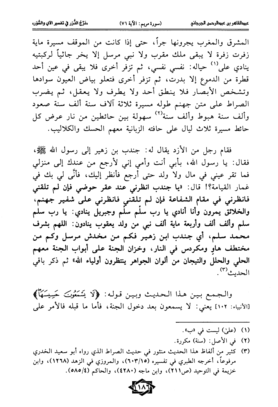 (¬3) كثير من ألفاظ هذا الحديث منثور في حديث الصراط الذي رواه أبو سعيد الخدري مرفوعًا، أخرجه الطبري في تفسيره (15/ 603)، والمروزي في الزهد (1268)، وابن خزيمة في التوحيد (ص 211)، وابن ماجه (4280)، والحاكم (4/ 585).