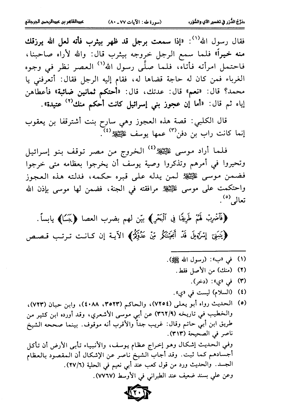 (¬5) الحديث رواه أبو يعلى (7254)، والحاكم (3523، 4088)، وابن حبان (723)، والخطيب في تاريخه (9/ 362) عن أبي موسى الأشعري، وقد أورده ابن كثير من طريق ابن أبي حاتم وقال: غريب جدًا والأقرب أنه موقوف. بينما صححه الشيخ ناصر في الصحيحة (313).
