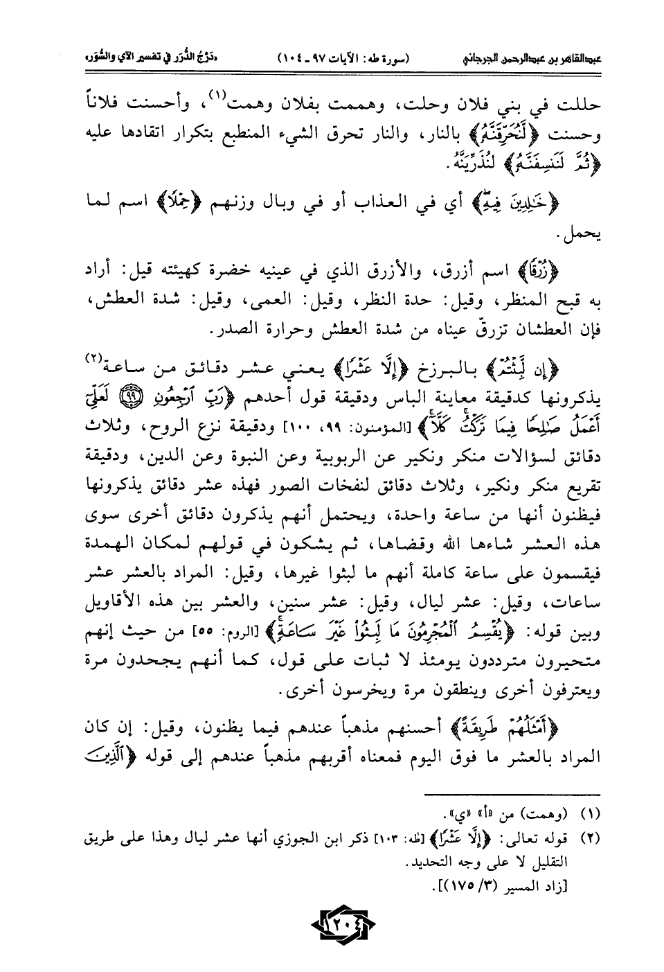 (¬2) قوله تعالى: {إِلَّا عَشْرًا} [طه: 103] ذكر ابن الجوزي أنها عشر ليال وهذا على طريق التقليل لا على وجه التحديد.