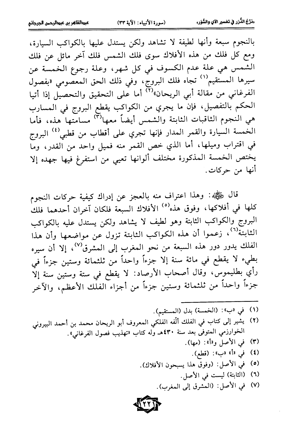(¬2) يشير إلى كتاب في الفلك ألّفه الفلكي المعروف أبو الريحان محمَّد بن أحمد البيروني الخوارزمي المتوفى بعد سنة 430 هـ وله كتاب "تهذيب فصول الفرغاني".