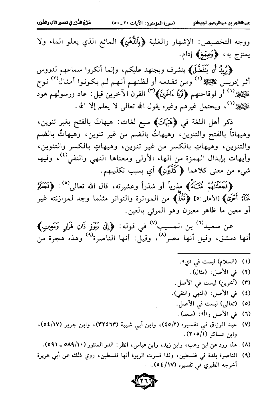 (¬9) الناصرة بلدة في فلسطين، ولذا فسرت الربوة أنها فلسطين، روي ذلك عن أبي هريرة أخرجه الطبري في تفسيره (17/ 54).