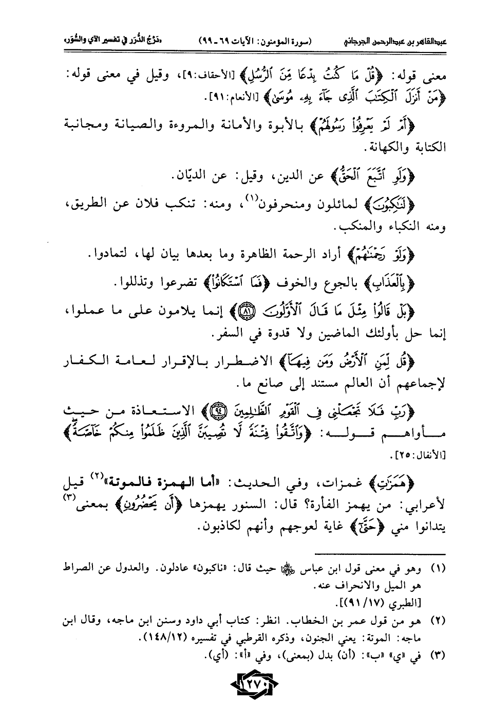 (¬1) وهو في معى قول ابن عباس - رضي الله عنهما - حيث قال: "ناكبون" عادلون. والعدول عن الصراط هو الميل وإلانحراف عنه.