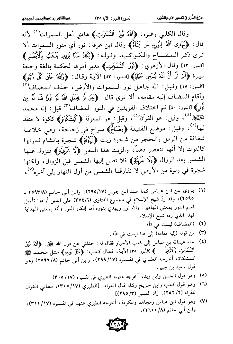 (¬4) جاء عبد الله بن عباس إلى كعب الأحبار فقال له: حدثني عن قول الله -عَزَّ وَجَلَّ-: {اللَّهُ نُورُ السَّمَاوَاتِ وَالْأَرْضِ ....} [النُّور: 35] الآية، فقال كعب: {مَثَلُ نُورِهِ} مثل محمَّد - صلى الله عليه وسلم - كمشكاة، أخرجه الطبري في تفسيره (17/ 299)، وابن أبي حاتم (8/ 2596) وهو قول سعيد بن جبير.