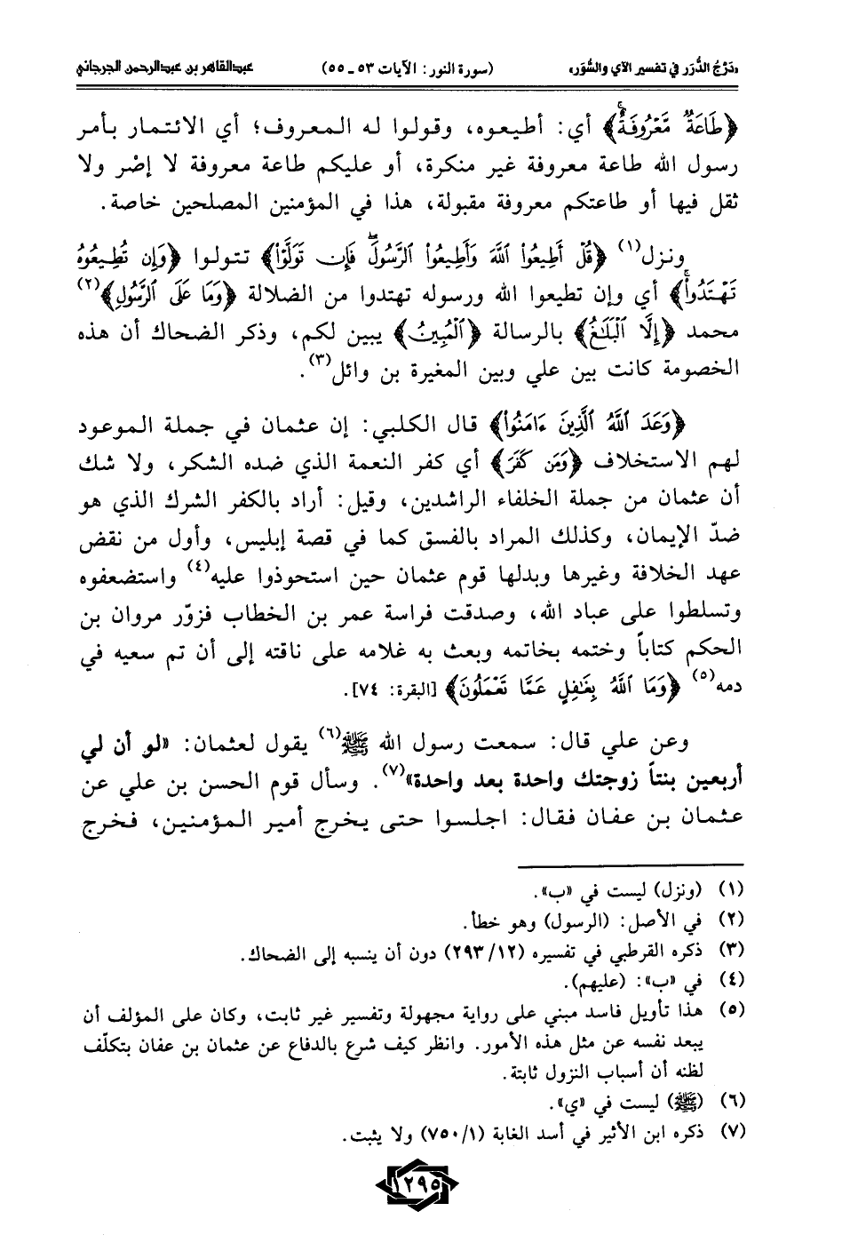 (¬5) هذا تأويل فاسد مبني على رواية مجهولة وتفسير غير ثابت، وكان على المؤلف أن يبعد نفسه عن مثل هذه الأمور. وانظر كيف شرع بالدفاع عن عثمان بن عفان بتكلّف لظنه أن أسباب النزول ثابتة.