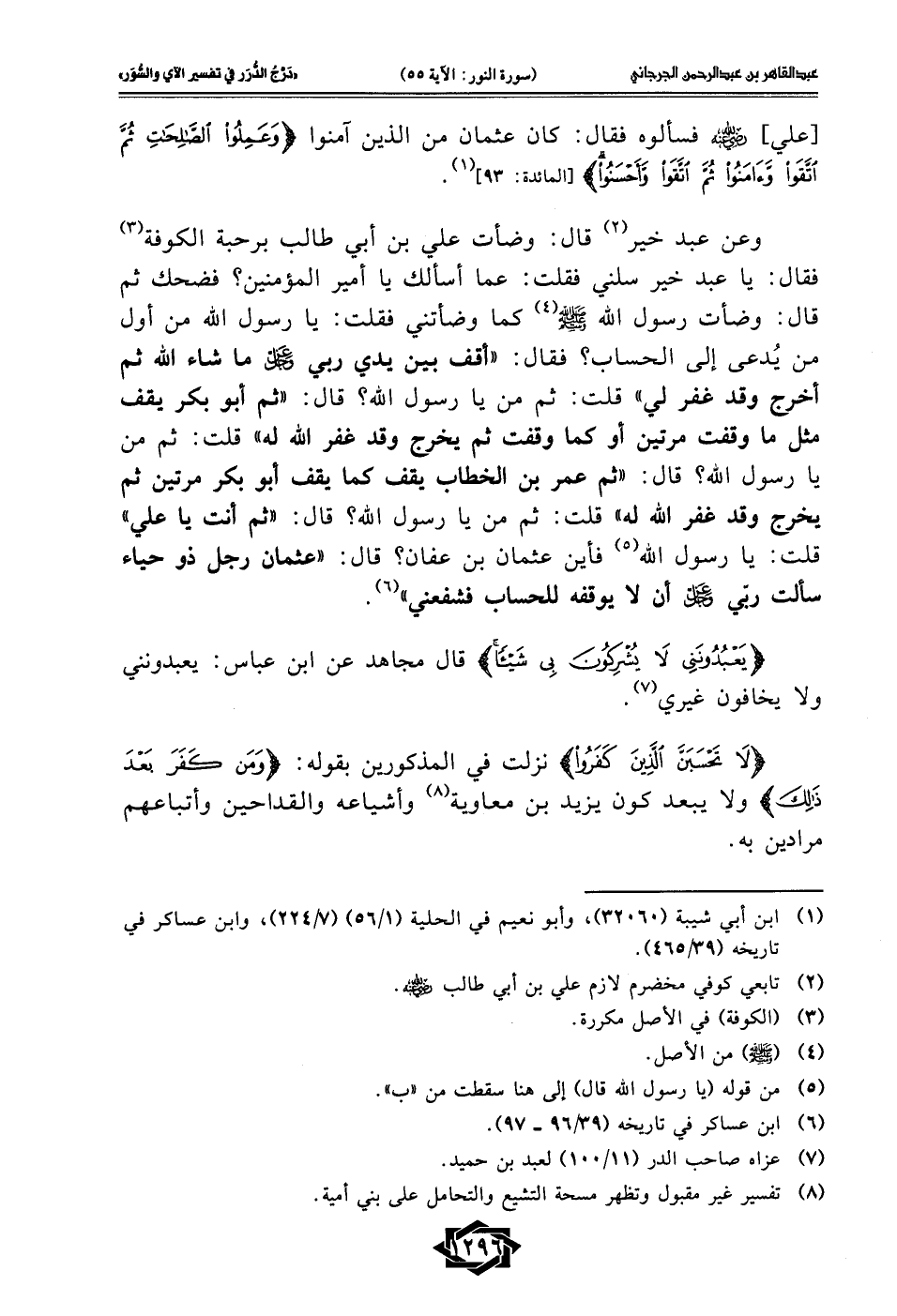 (¬8) تفسير غير مقبول وتظهر مسحة التشيع والتحامل علي بني أمية.