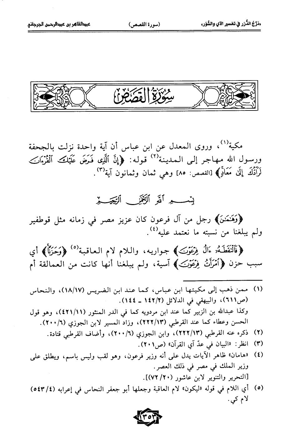 (¬1) ممن ذهب إلى مكيتها ابن عباس، كما عند ابن الضريس (17/ 18)، والنحاس (ص 611)، والبيهقي في الدلائل (2/ 142 - 144).