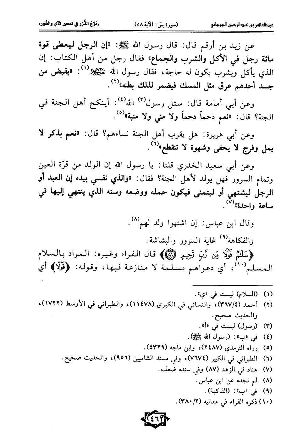 {سَلَامٌ قَوْلًا مِنْ رَبٍّ رَحِيمٍ (58)} قال الفراء وغيره: المراد بالسلام المسلم (¬10)، أي دعواهم مسلمة لا منازعة فيها، وقوله: {قَوْلًا} أي