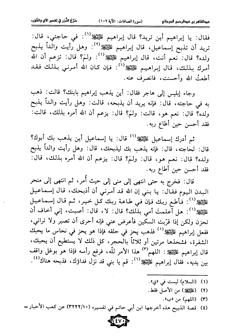 (¬4) قصة الذبيح هذه أخرجها ابن أبي حاتم في تفسيره (10/ 3222) عن كعب الأحبار =