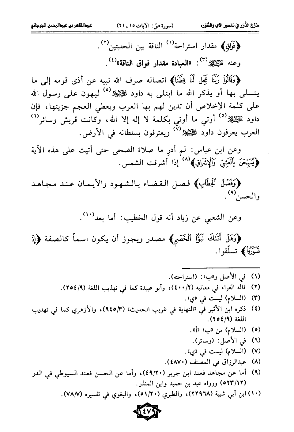 (¬9) أما عن مجاهد فعند ابن جرير (20/ 49)، وأما عن الحسن فعند السيوطي في الدر (12/ 523) ورواه عبد بن حميد وابن المنذر.