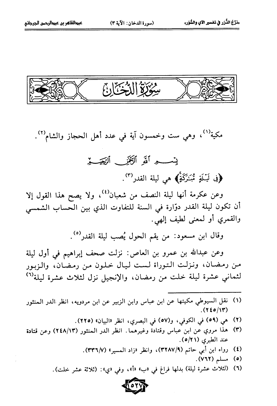 (¬1) نقل السيوطي مكيتها عن ابن عباس وابن الزبير عن ابن مردويه، انظر الدر المنثور (13/ 245).