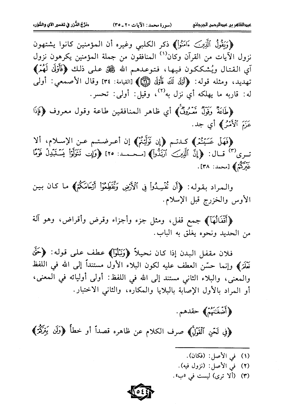 {طَاعَةٌ وَقَوْلٌ مَعْرُوفٌ} أي ظاهر المنافقين طاعة وقول معروف {فَإِذَا عَزَمَ الْأَمْرُ} أي جد.