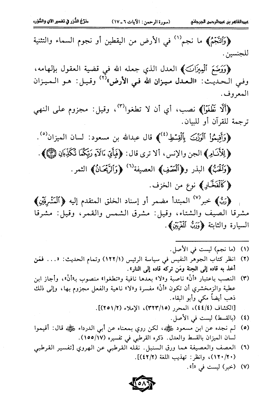 (¬5) لم نجده عن ابن مسعود - رضي الله عنه -، لكن روي بمعناه عن أبي الدرداء - رضي الله عنه - قال: أقيموا لسان الميزان بالقسط والعدل. ذكره القرطبي في تفسيره (17/ 155).