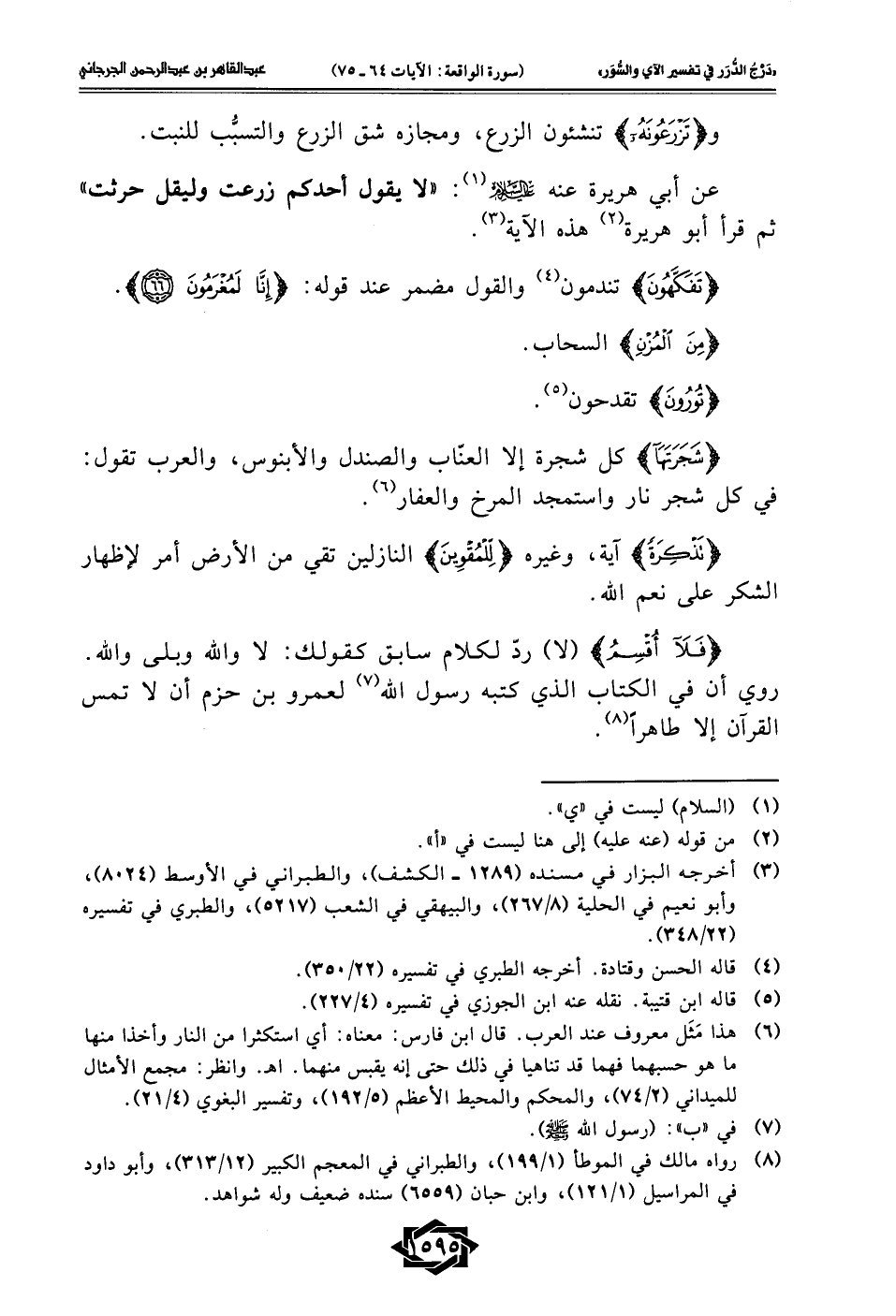 عن أبي هريرة عنه -عليه السلام- (¬1): "لا يقول أحدكم زرعت وليقل حرثت" ثم قرأ أبو هريرة (¬2) هذه الآية (¬3).
