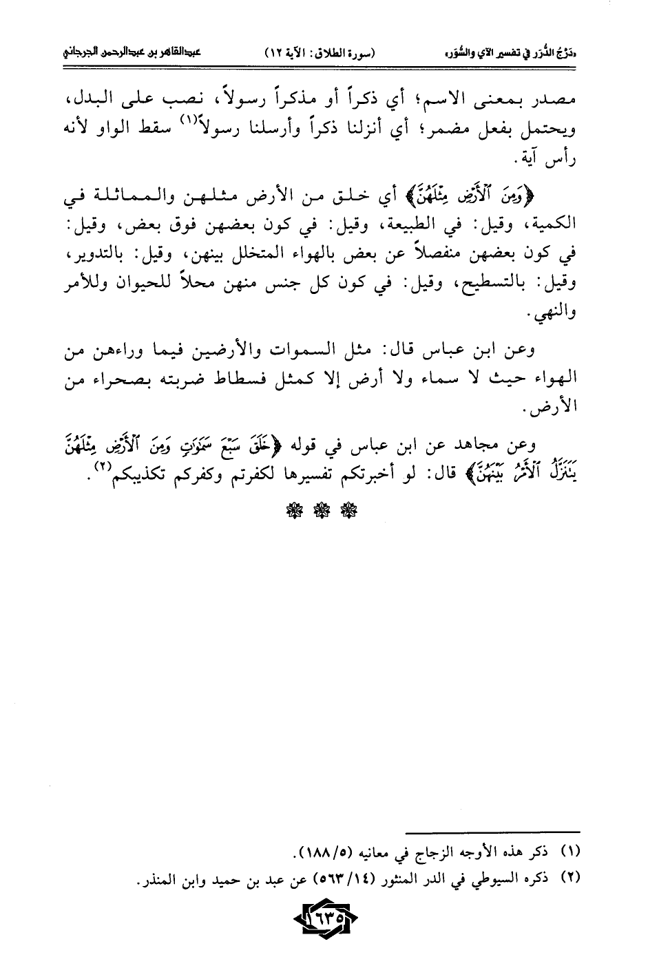 وعن مجاهد عن ابن عباس في قوله {خَلَقَ سَبْعَ سَمَاوَاتٍ وَمِنَ الْأَرْضِ مِثْلَهُنَّ يَتَنَزَّلُ الْأَمْرُ بَيْنَهُنَّ} قال: لو أخبرتكم تفسيرها لكفرتم وكفركم تكذيبكم (¬2).