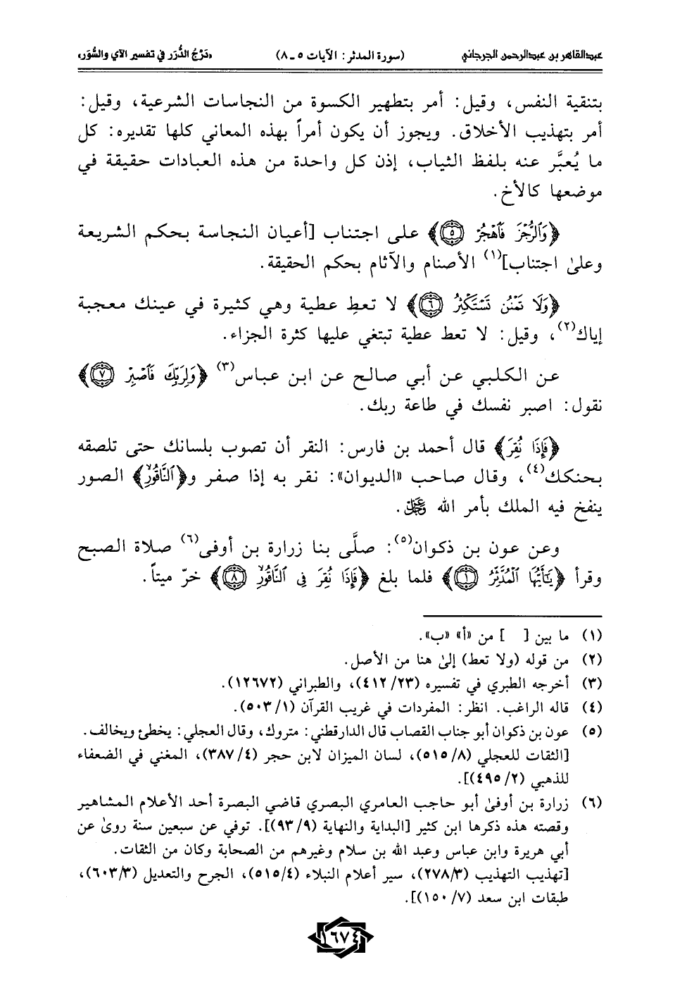 (¬6) زرارة بن أوفى أبو حاجب العامري البصري قاضي البصرة أحد الأعلام المشاهير وقصته هذه ذكرها ابن كثير [البداية والنهاية (9/ 93)]. توفي عن سبعين سنة روى عن أبي هريرة وابن عباس وعبد الله بن سلام وغيرهم من الصحابة وكان من الثقات.