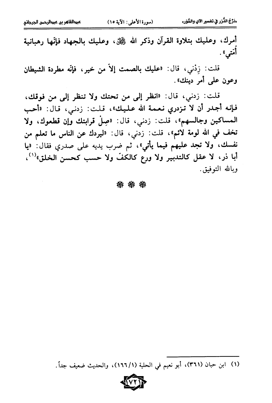 أمرك، وعليك بتلاوة القرآن وذكر الله عزوجل، وعليك بالجهاد فإنّها رهبانية أُمّتي".