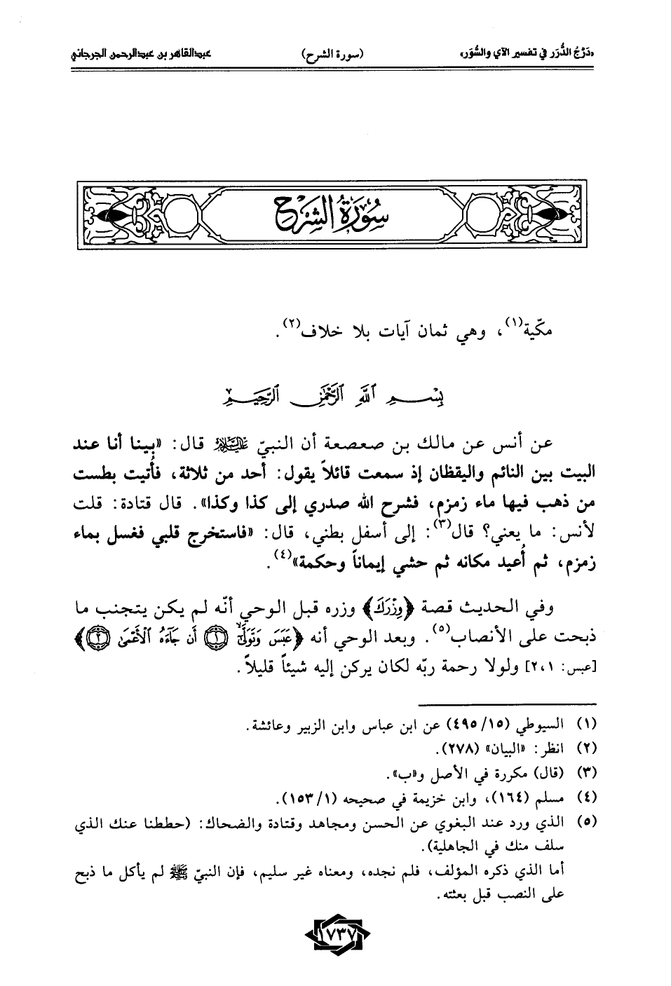 (¬5) الذي ورد عند البغوي عن الحسن ومجاهد وقتادة والضحاك: (حططنا عنك الذي سلف منك في الجاهلية).