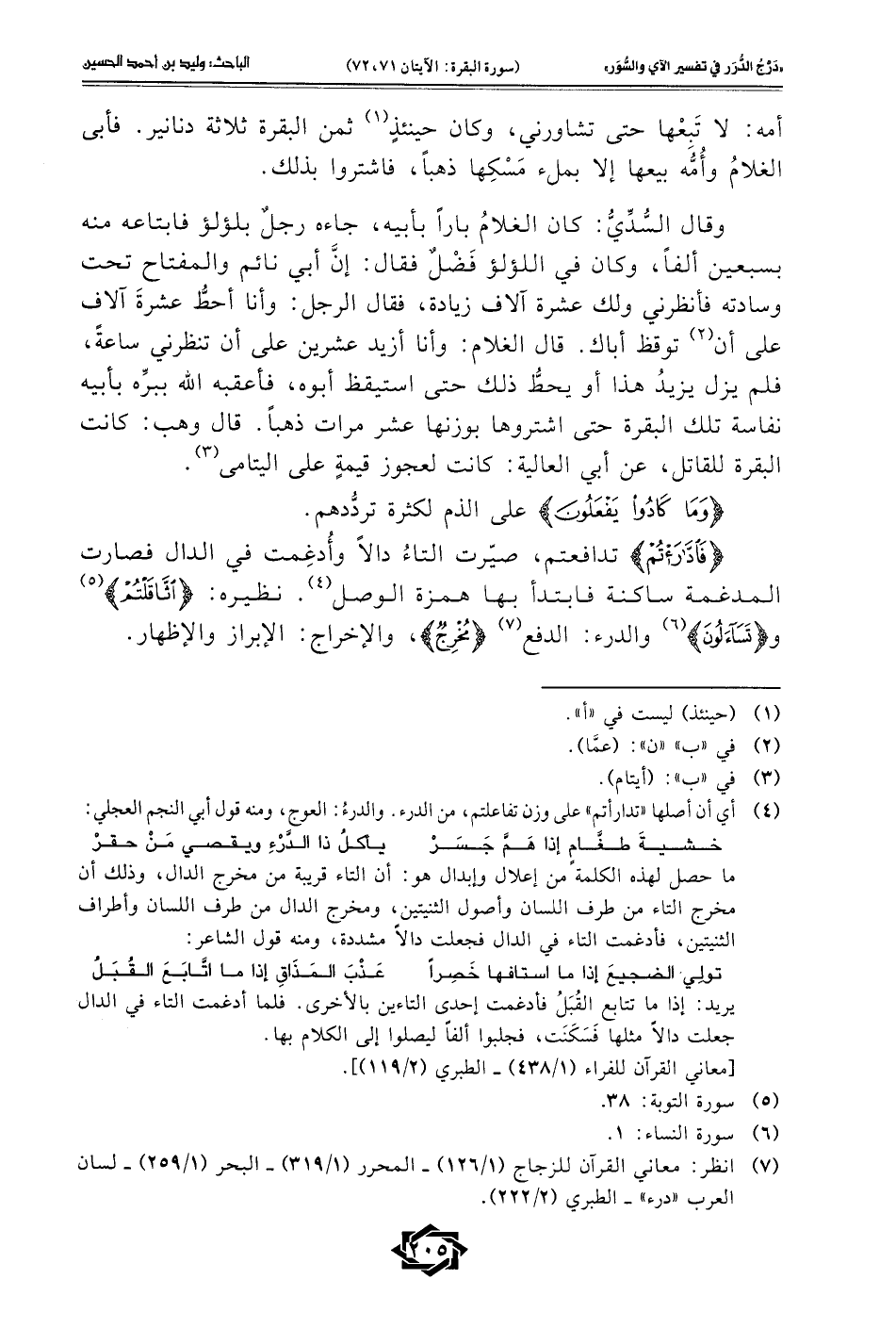 (¬7) انظر: معاني القرآن للزجاج (1/ 126) - المحرر (1/ 319) - البحر (1/ 259) - لسان العرب "درء" - الطبري (2/ 222).