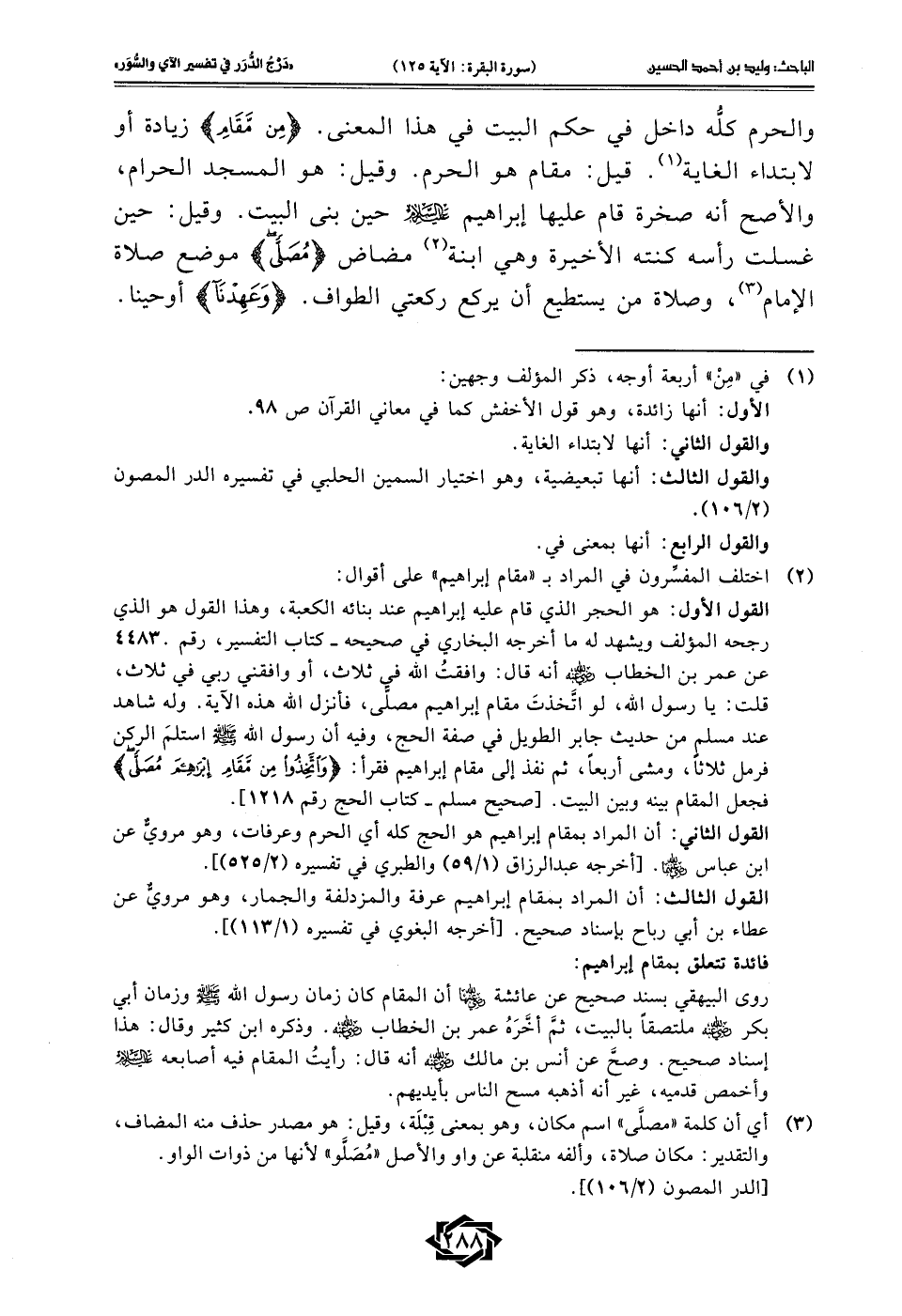 (¬2) اختلف المفسِّرون في المراد بـ "مقام إبراهيم" على أقوال: