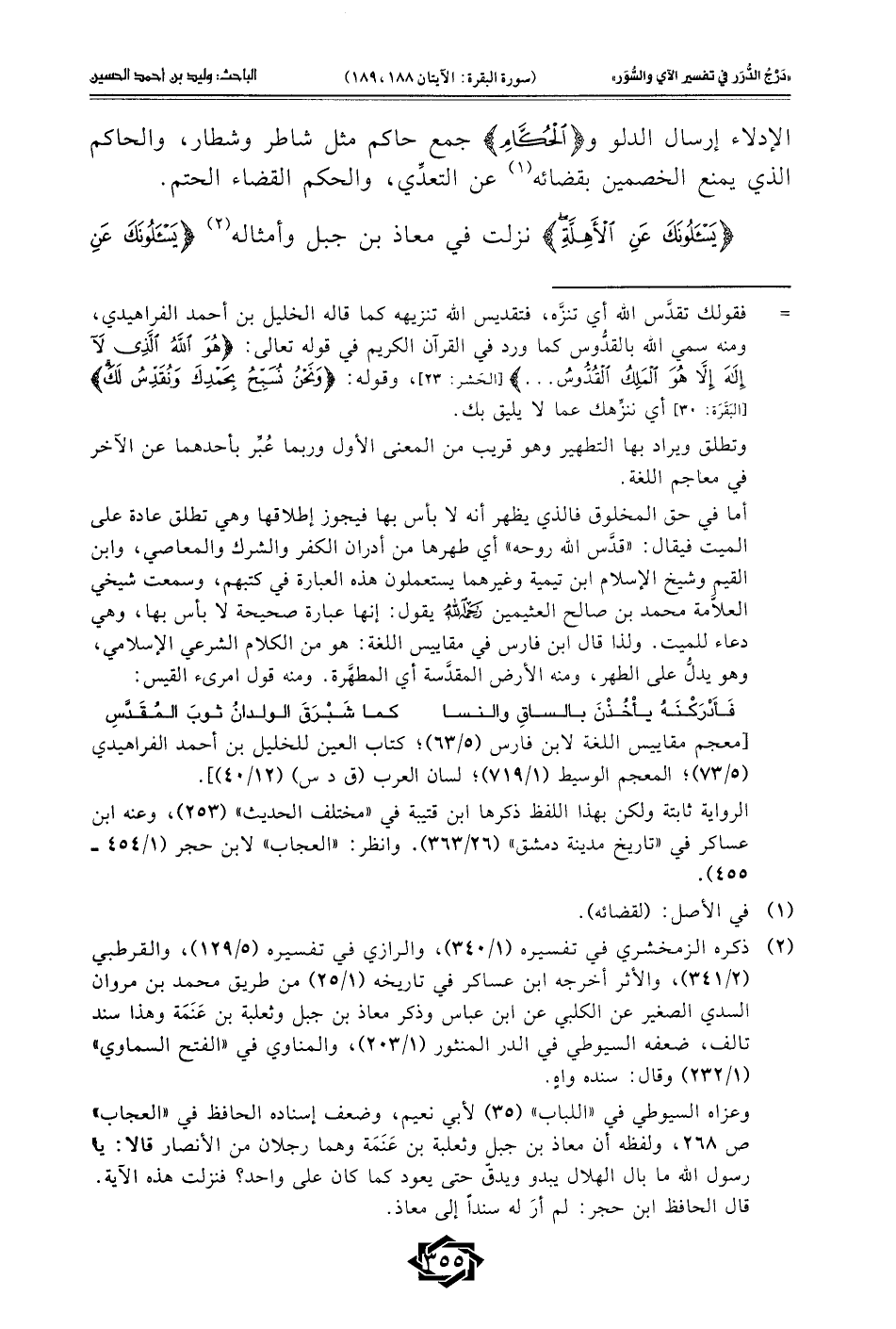 {يَسْأَلُونَكَ عَنِ الْأَهِلَّةِ} نزلت في معاذ بن جبل وأمثاله (¬2) {يَسْأَلُونَكَ عَنِ