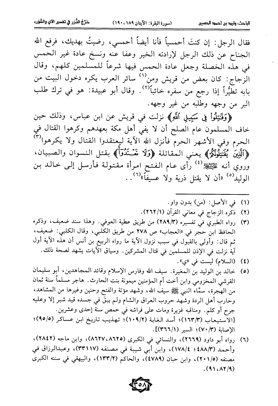 (¬3) رواه الطبري في تفسيره (3/ 289) من طريق عطية العوفي. وهذا سند ضعيف، وذكره الحافظ ابن حجر في "العجاب" ص 278 من طريق الكلبي، وقال الكلبي: ضعيف، ثم قال: وأولى بالقبول في سبب نزول الآية ما رواه الربيع بن أنس أن هذه الآية أول آية نزلت في الإذن للمسلمين في قتال المشركين. وسياق الآيات يشهد لصحة ذلك.