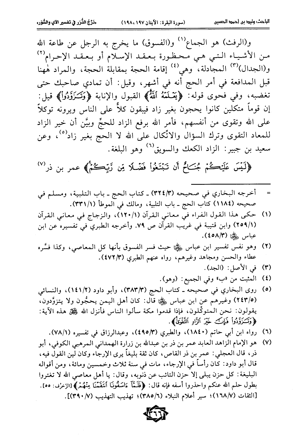 {لَيْسَ عَلَيْكُمْ جُنَاحٌ أَنْ تَبْتَغُوا فَضْلًا مِنْ رَبِّكُمْ} عمر بن ذر (¬7)