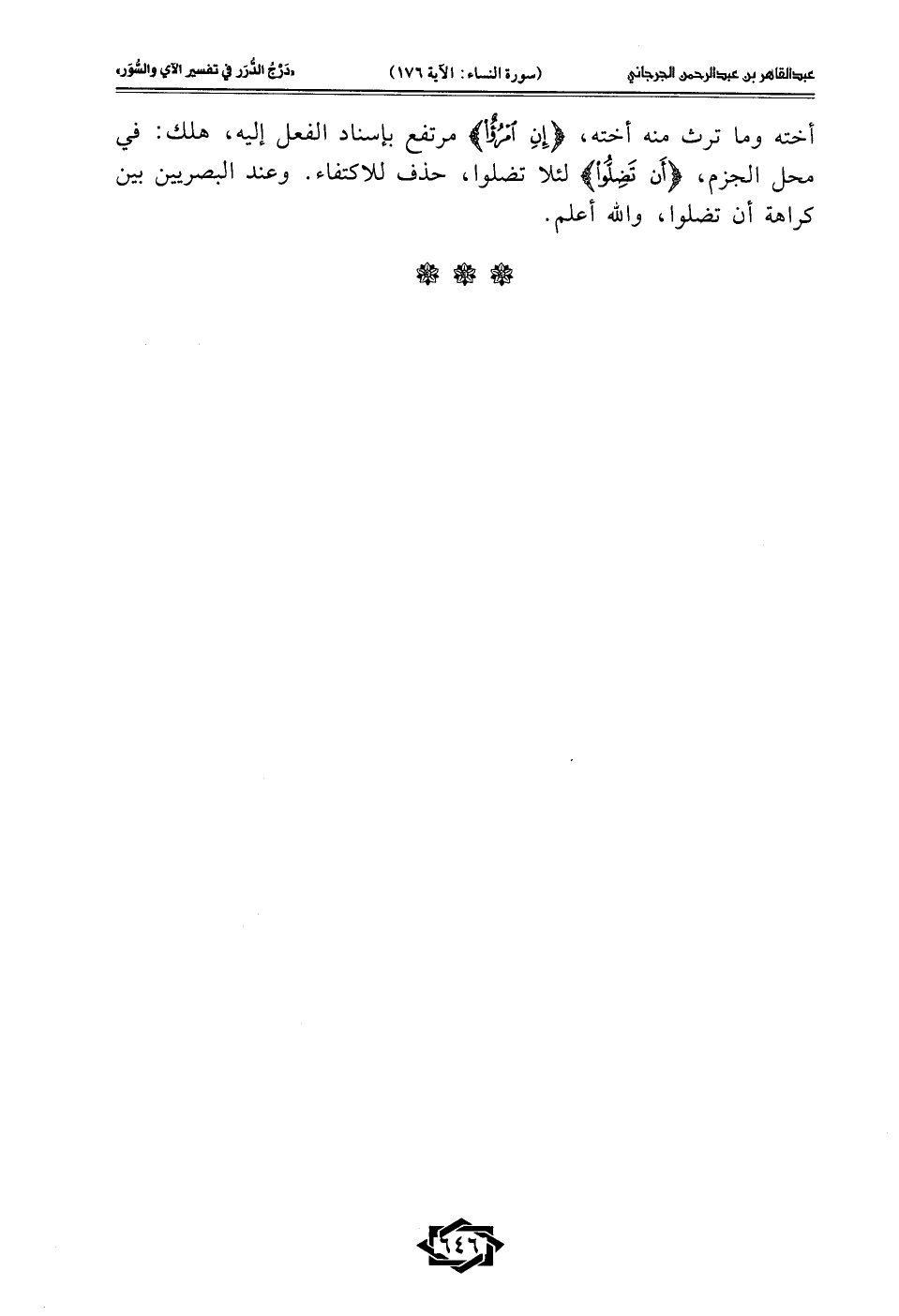أخته وما ترث منه أخته، {إِنِ امْرُؤٌ} مرتفع بإسناد الفعل إليه، هلك: في محل الجزم، {أَنْ تَضِلُّوا} لئلا تضلوا، حذف للاكتفاء. وعند البصريين بين كراهة أن تضلوا، والله أعلم.