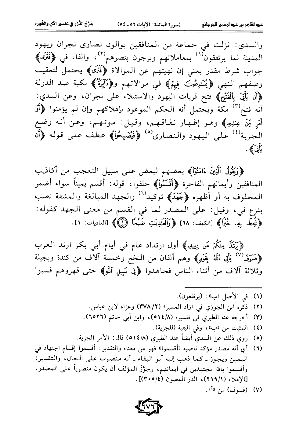 {يَرْتَدَّ مِنْكُمْ عَنْ دِينِهِ} أول ارتداد عام في أيام أبي بكر ارتد العرب {فَسَوْفَ (¬7) يَأْتِي اللَّهُ بِقَوْمٍ} وهم ألفان من النخع وخمسة آلاف من كندة وبجيلة وثلاثة آلاف من أثناء الناس فجاهدوا {فِي سَبِيلِ اللَّهِ} حتى قهروهم فسبوا