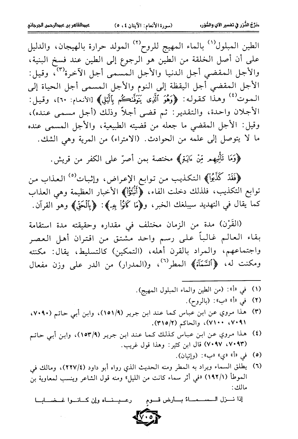 (القَرْن) مدة من الزمان مختلف في مقداره وحقيقته مدة استقامة بقاء العالم غالبًا على رسم واحد مشتق من اقتران أهل العصر واجتماعهم، والمراد بالقرن أهله، (التمكين) كالتسليط، يقال: مكنته ومكنت له، {السَّمَاءَ} المطر (¬6)، و (المدرار) من الدر على وزن مفعال