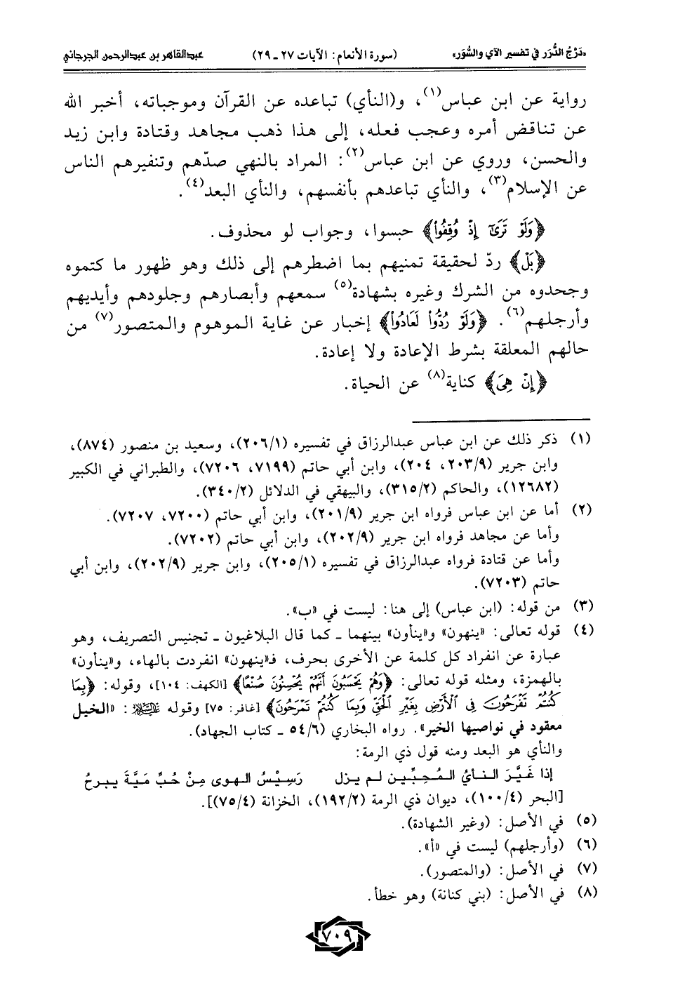 (¬2) أما عن ابن عباس فرواه ابن جرير (9/ 201)، وابن أبي حاتم (7200، 7207). وأما عن مجاهد فرواه ابن جرير (9/ 202)، وابن أبي حاتم (7202). وأما عن قتادة فرواه عبد الرزاق في تفسيره (1/ 205)، وابن جرير (9/ 202)، وابن أبي حاتم (7203).