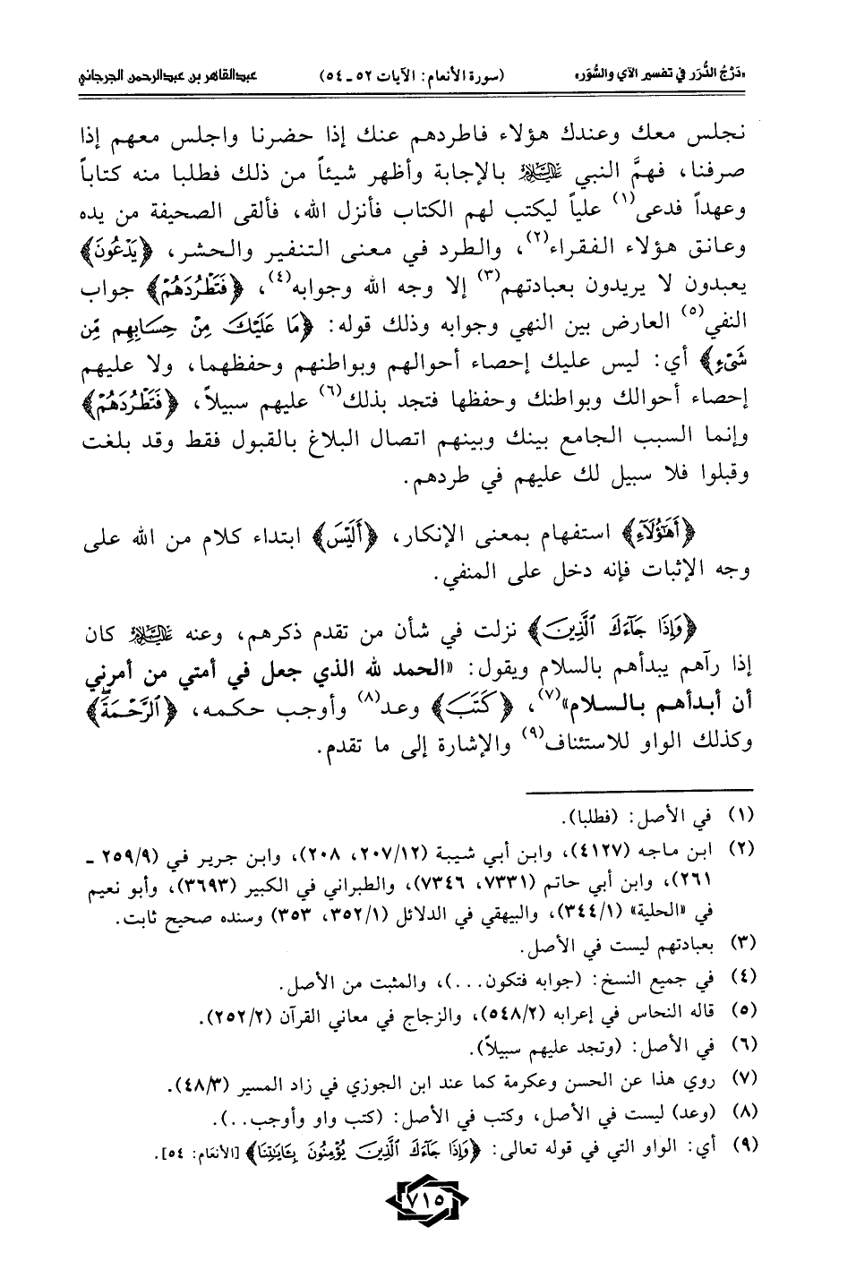 (¬9) أي: الواو التي في قوله تعالى: {وَإِذَا جَاءَكَ الَّذِينَ يُؤْمِنُونَ بِآيَاتِنَا} [الأنعَام: 54].