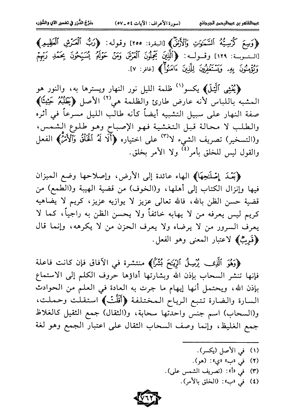 {يُغْشِي اللَّيْلَ} يكسو (¬1) ظلمة الليل نور النهار ويسترها به، والنور هو المشبه باللباس لأنه عارض طارئ والظلمة هي (¬2) الأصل {يَطْلُبُهُ حَثِيثًا} صفة النهار على سبيل التشبيه أيضًا كأنه طالب الليل مسرعًا في أثره والطلب لا محالة قبل التغشية فهو الإصباح وهو طلوع الشمس، و (التسخير) تصريف الشيء لا (¬3) على اختياره {أَلَا لَهُ الْخَلْقُ وَالْأَمْرُ} الفعل والقول ليس للخلق بأمر (¬4) ولا الأمر بخلق.