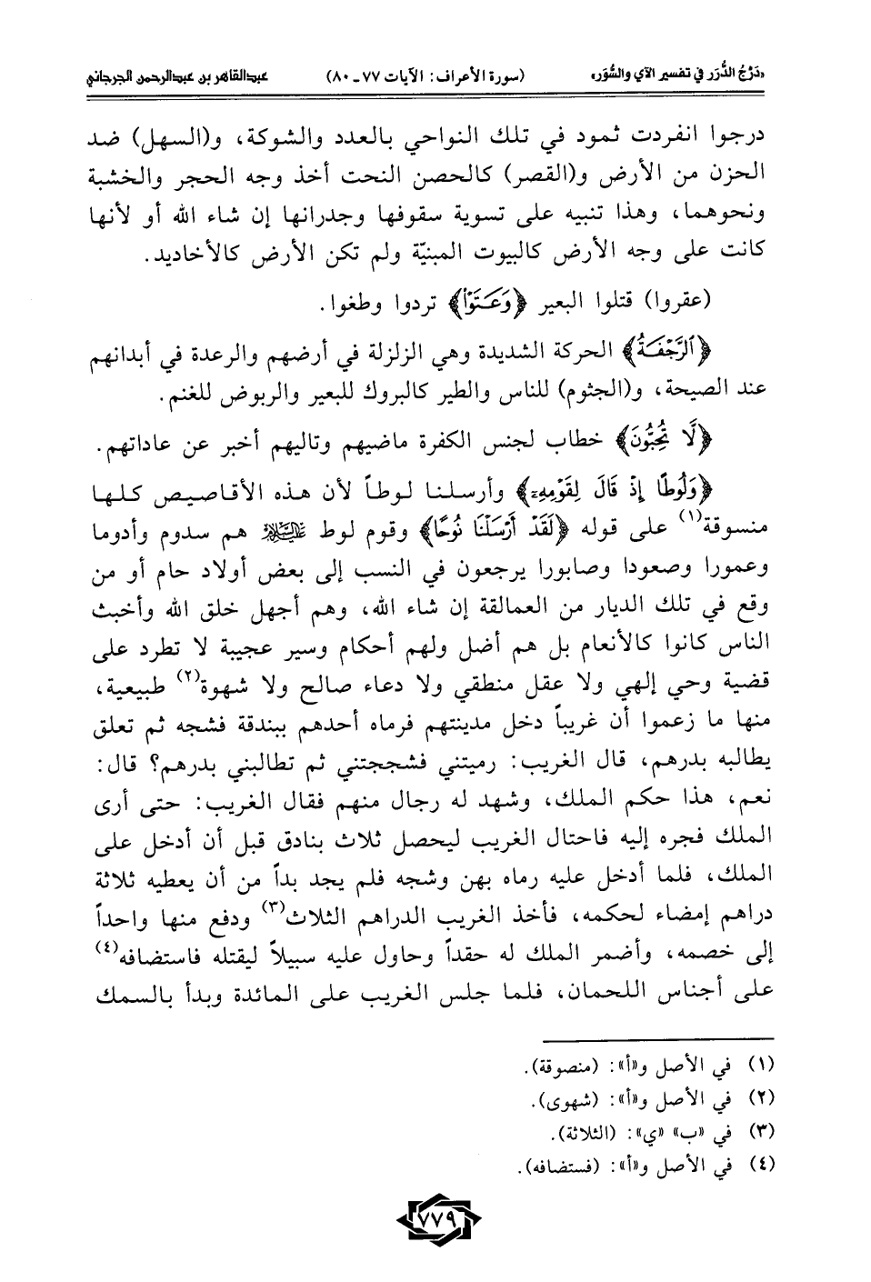 درجوا انفردت ثمود في تلك النواحي بالعدد والشوكة، و (السهل) ضد الحزن من الأرض و (القصر) كالحصن النحت أخذ وجه الحجر والخشبة ونحوهما، وهذا تنبيه على تسوية سقوفها وجدرانها إن شاء الله أو لأنها كانت على وجه الأرض كالبيوت المبنيّة ولم تكن الأرض كالأخاديد.