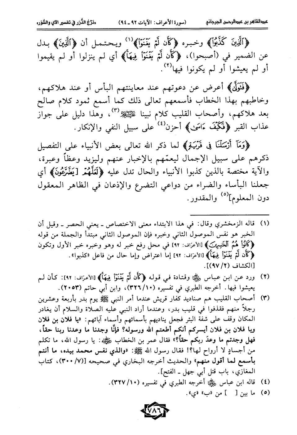 (¬3) أصحاب القليب هم صناديد كفار قريش عندما أمر النبي - صلى الله عليه وسلم - يوم بدر بأربعة وعشرين رجلًا منهم فقذفوا في قليب بدر، وعندما أراد النبي عليه الصلاة والسلام أن يغادر المكان وقف على شفة البئر فجعل يناديهم بأسمائهم وأسماء آبائهم:، يا فلان بن فلان وبا فلان بن فلان أيسركم أنكم أطعتم الله ورسوله؟ فإنَّا وجدنا ما وعدنا ربنا حقًا، فهل وجدتم ما وعدَ ربكم حقًا؟! فقال عمر بن الخطاب - رضي الله عنه -: يا رسول الله، ما تكلم من أجسادٍ لا أرواح لها؟! فقال رسول الله - رضي الله عنه -: "والذي نفس محمد بيده، ما أنتم بأسمع لما أقول منهم" والحديث أخرجه البخاري في صحيحه [(7/ 300)، كتاب المغازي، باب قتل أبي جهل - الفتح].