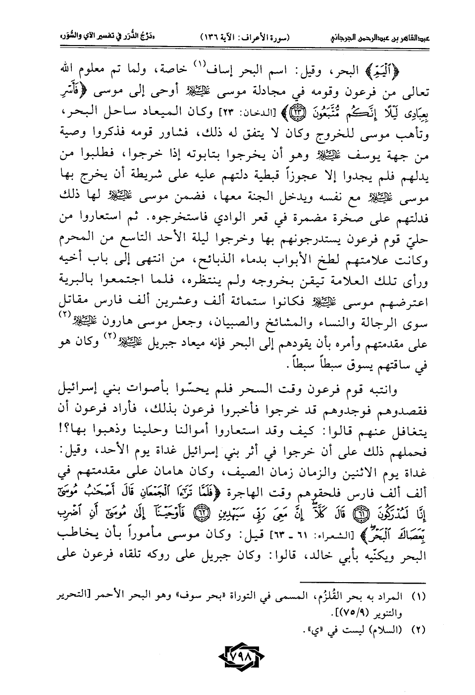 (¬1) المراد به بحر القُلزُم، المسمى في التوراة "بحر سوف" وهو البحر الأحمر [التحرير والتنوير (9/ 75)].