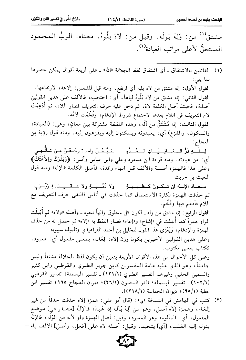 (¬1) القائلين بالاشتقاق -أي اشتقاق لفظ الجلالة "الله" - على أربعة أقوال يمكن حصرها بما يلي: