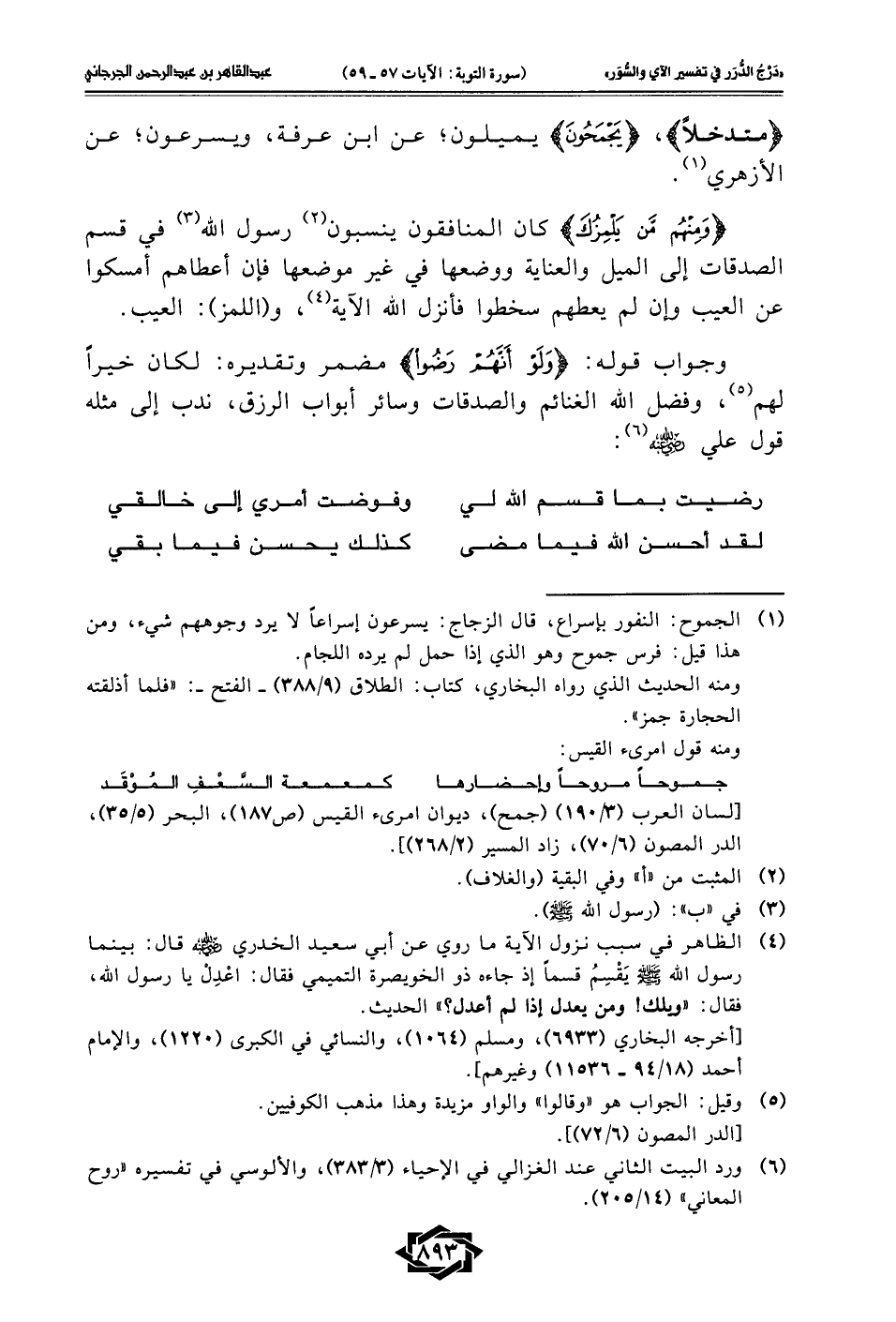 (¬6) ورد البيت الثاني عند الغزالي في الإحياء (3/ 383)، والألوسي في تفسيره "روح المعاني" (14/ 205).