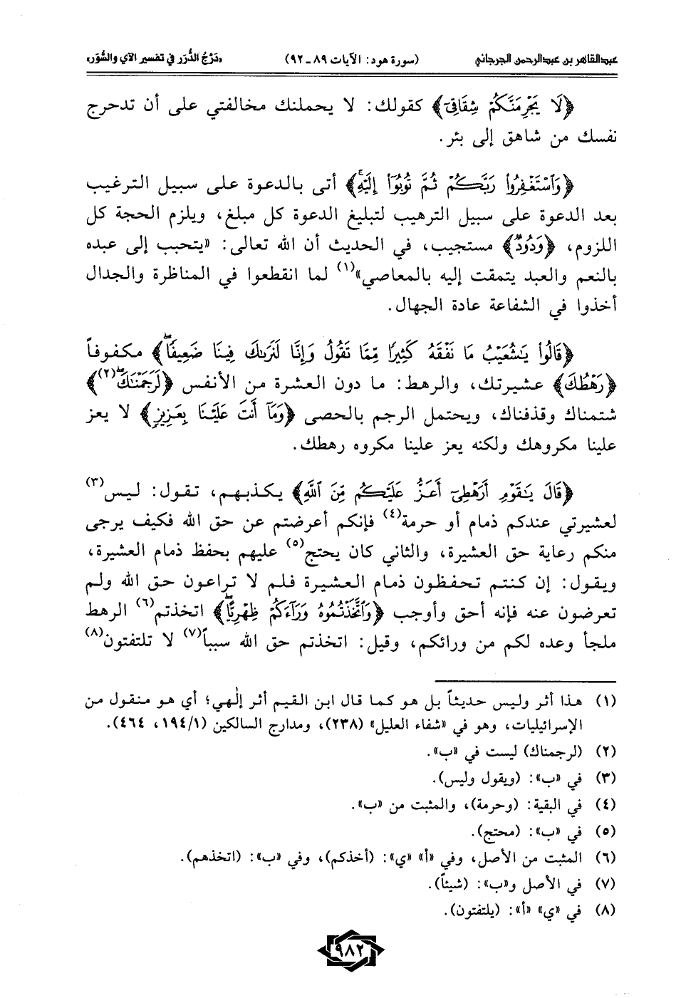 {وَاسْتَغْفِرُوا رَبَّكُمْ ثُمَّ تُوبُوا إِلَيْهِ} أتى بالدعوة على سبيل الترغيب بعد الدعوة على سبيل الترهيب لتبليغ الدعوة كل مبلغ، ويلزم الحجة كل اللزوم، {وَدُودٌ} مستجيب، في الحديث أن الله تعالى: "يتحبب إلى عبده بالنعم والعبد يتمقت إليه بالمعاصي" (¬1) لما انقطعوا في المناظرة والجدال أخذوا في الشفاعة عادة الجهال.