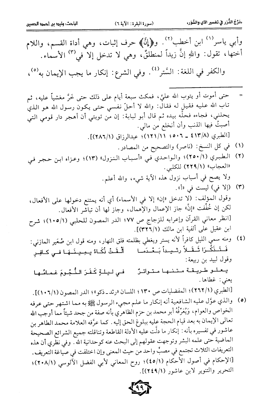 وأبي ياسر (¬1) ابن أخطب (¬2). و {إنَّ} حرف إثبات، وهي أداة القسم، واللام أختها، تقول: واللهِ إنَّ زيدًا لمنطلقٌ، وهي لا تدخل إلا في (¬3) الأسماء.