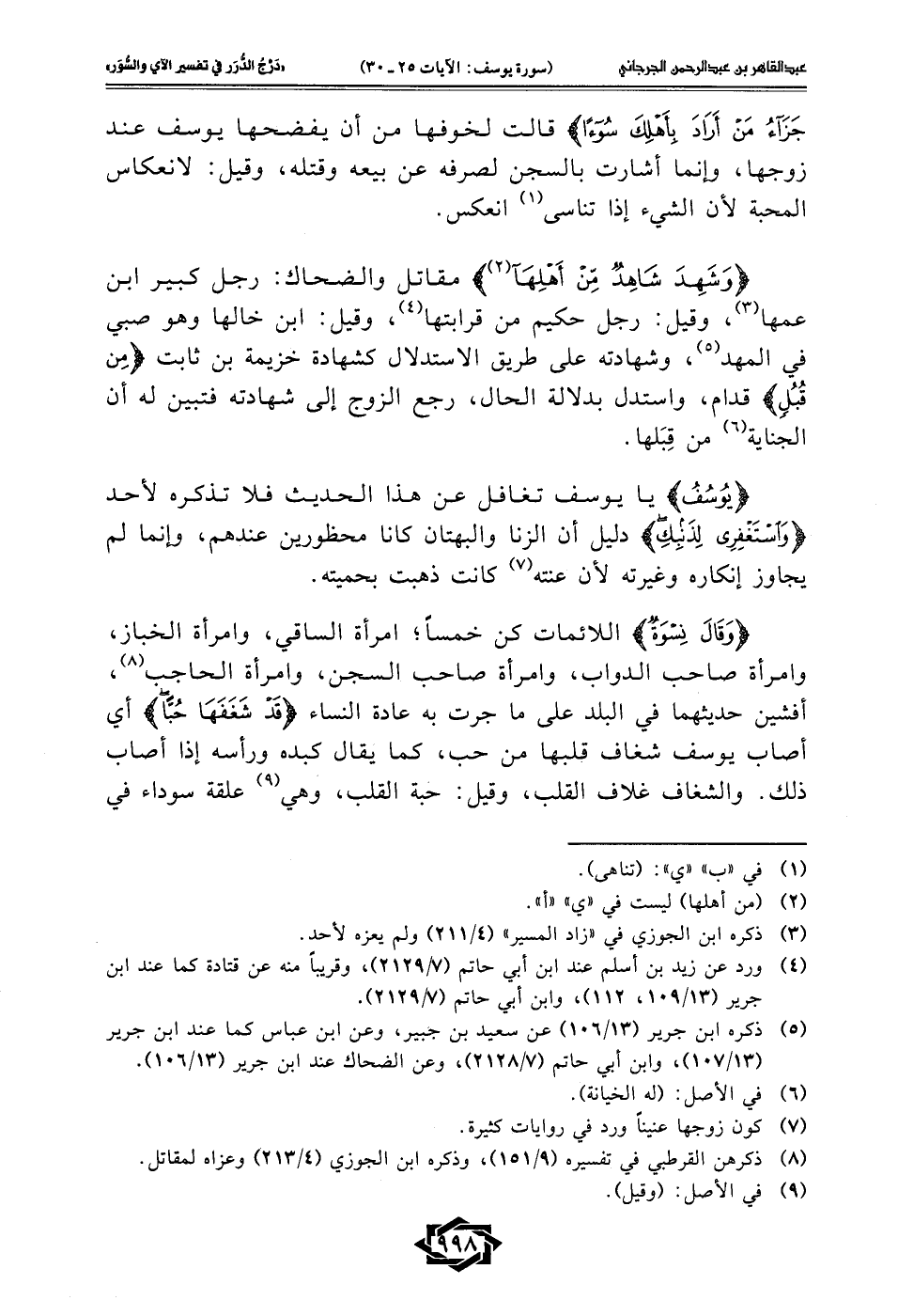 {يُوسُفُ} يا يوسف تغافل عن هذا الحديث فلا تذكره لأحد {وَاسْتَغْفِرِي لِذَنْبِكِ} دليل أن الزنا والبهتان كانا محظورين عندهم، وإنما لم يجاوز إنكاره وغيرته لأن عنته (¬7) كانت ذهبت بحميته.