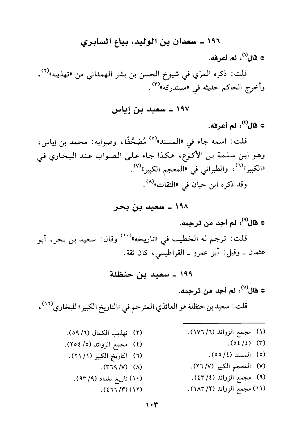 قلت: سعيد بن حنظلة هو العائذي المترجم في "التاريخ الكبير" للبخاري (¬12)،