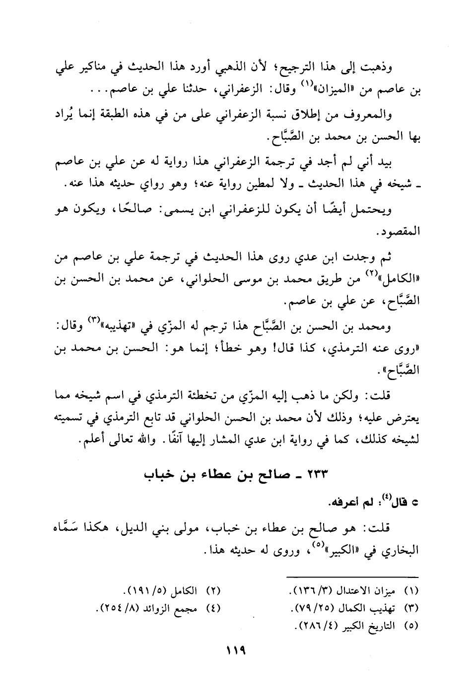 ثم وجدت ابن عدي روى هذا الحديث في ترجمة علي بن عاصم من "الكامل" (¬2) من طريق محمَّد بن موسى الحلواني، عن محمَّد بن الحسن بن الصَّبَّاح، عن علي بن عاصم.