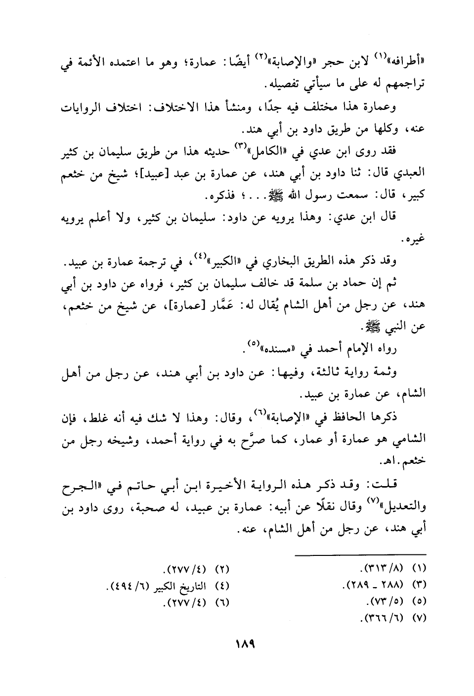 "أطرافه" (¬1) لابن حجر "والإصابة" (¬2) أيضًا: عمارة؛ وهو ما اعتمده الأئمة في تراجمهم له على ما سيأتي تفصيله.