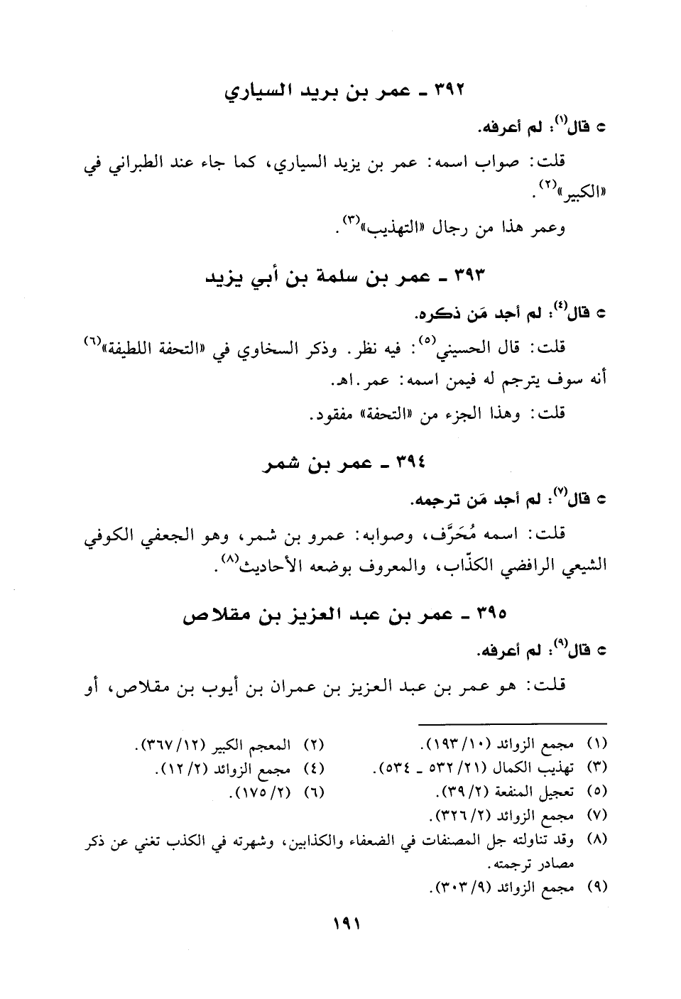 كتاب الفرائد على مجمع الزوائد «ترجمة الرواة الذين لم يعرفهم الحافظ الهيثمي»