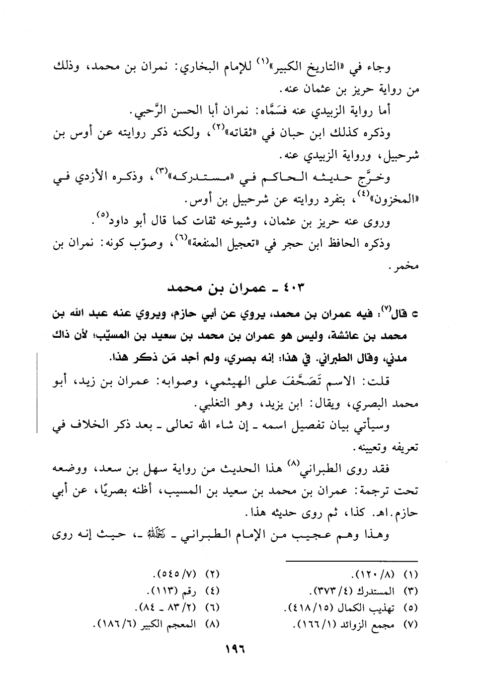 قال (¬7): فيه عمران بن محمَّد، يروي عن أبي حازم, ويروي عنه عبد الله بن محمَّد بن عائشة وليس هو عمران بن محمَّد بن سعيد بن المسيّب؛ لأن ذاك مدني, وقال الطبراني. في هذا: أنه بصري ولم أجد مَن ذكر هذا.