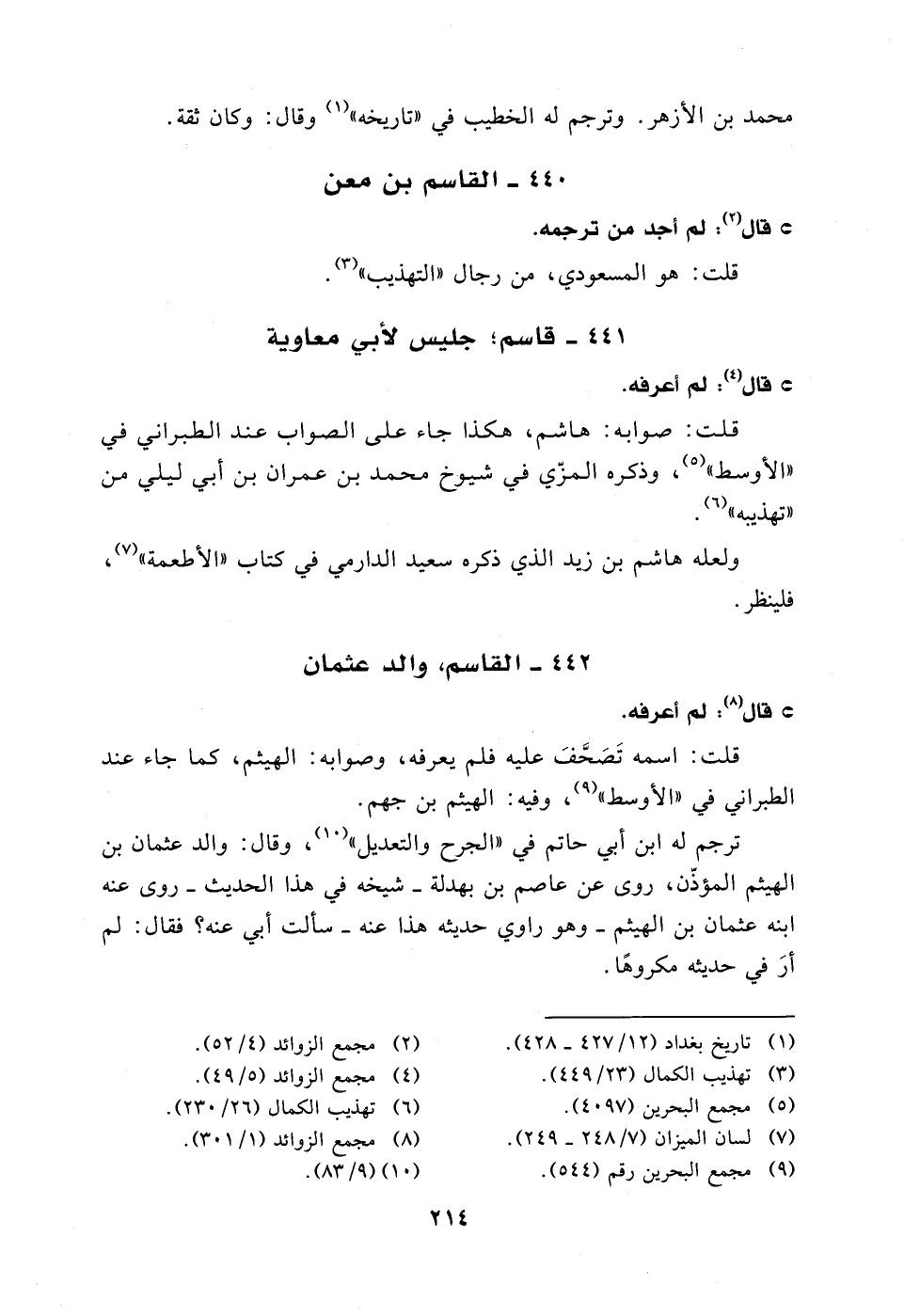 كتاب الفرائد على مجمع الزوائد «ترجمة الرواة الذين لم يعرفهم الحافظ الهيثمي»