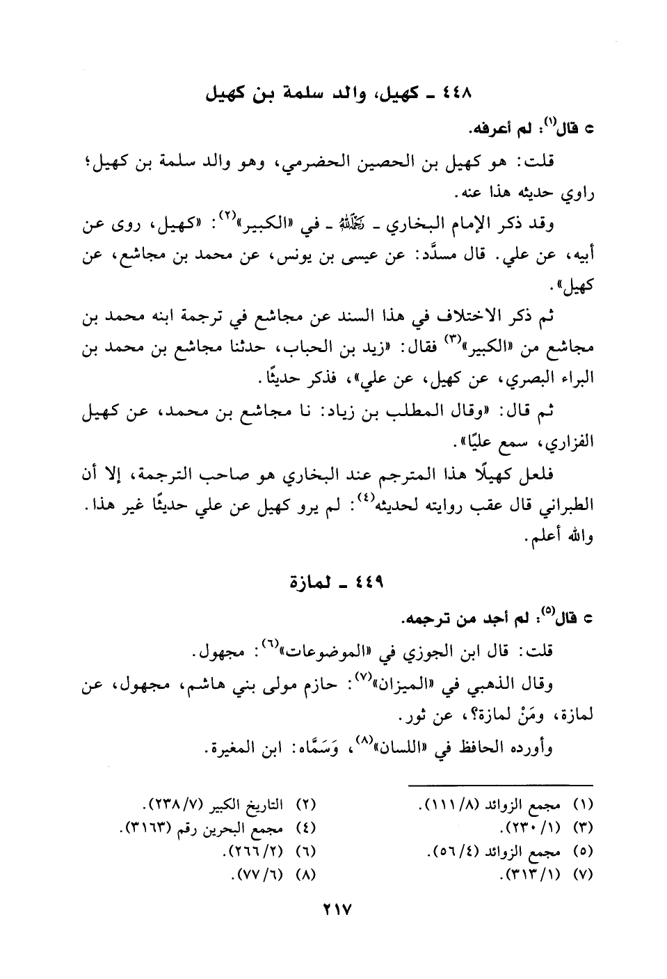 كتاب الفرائد على مجمع الزوائد «ترجمة الرواة الذين لم يعرفهم الحافظ الهيثمي»