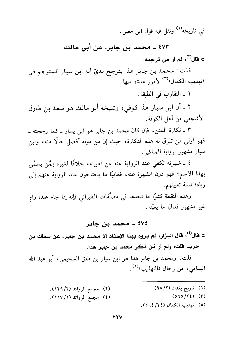قلت: ومحمد بن جابر هذا هو ابن سيار بن طلق السحيمي، أبو عبد الله اليمامي، من رجال "التهذيب" (¬5).