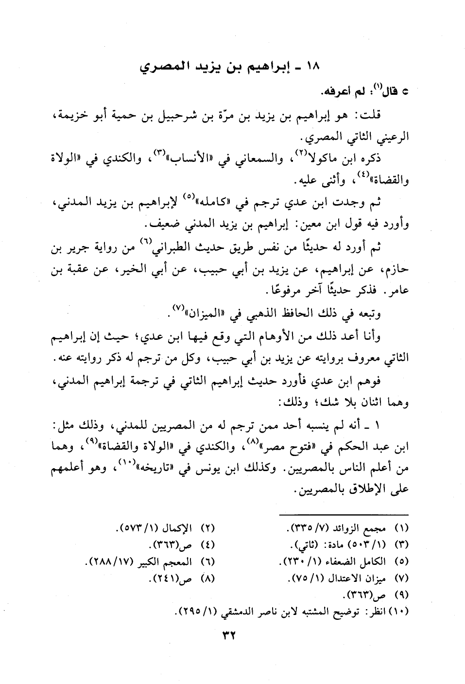 وأنا أعد ذلك من الأوهام التي وقع فيها ابن عدي؛ حيث إن إبراهيم الثاتي معروف بروايته عن يزيد بن أبي حبيب، وكل من ترجم له ذكر روايته عنه.