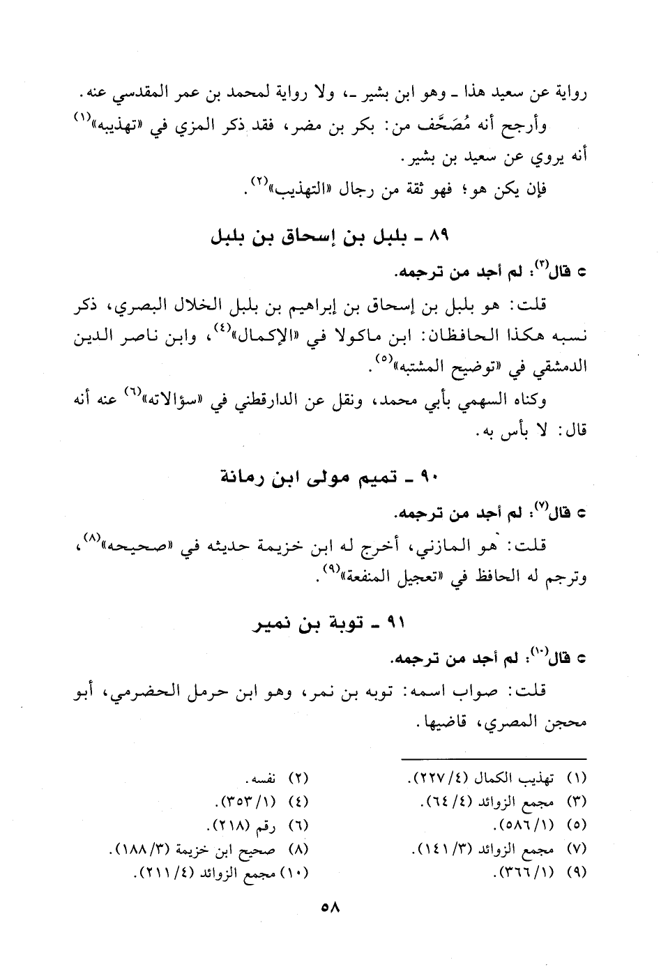 قلت: هو بلبل بن إسحاق بن إبراهيم بن بلبل الخلال البصري، ذكر نسبه هكذا الحافظان: ابن ماكولا في "الإكمال" (¬4)، وابن ناصر الدين الدمشقي في "توضيح المشتبه" (¬5).